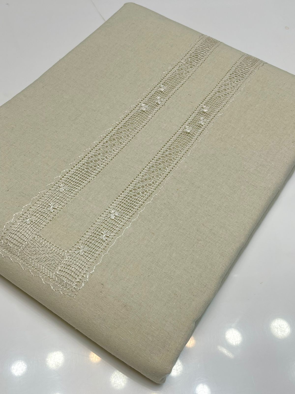 Crafted from soft Karandi Khaddar, featuring handmade Tarkashi Gala with neat detailing.